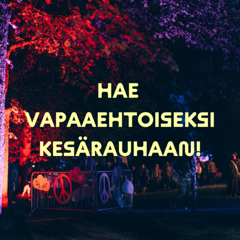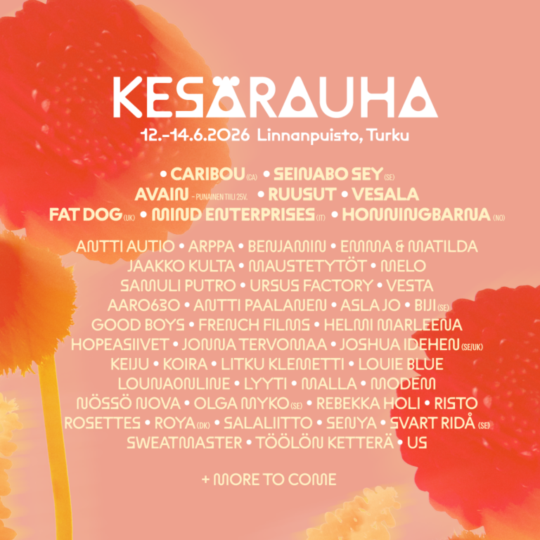 Arlo Parks saapuu ensimmäistä kertaa Suomeen ja esiintyy Kesärauhassa – kolmen päivän lippuja myyty enemmän kuin viime vuonna yhteensä Vapaaehtoishaku 2026 AUKI!<3 Kesärauhan ohjelma kasvaa hurjalla kattauksella uusia nimiä: SEITEMÄN KANSAINVÄLISTÄ JA seitsemän kotimaista artistia ohjelmistoon Kesärauha ja TYY tuovat yliopisto-opiskelijoille suunnatun bändikilpailun takaisin: Aprillirockin voittaja esiintyy tuhansien ihmisten edessä TYYlikäs Vappupiknik -tapahtumassa PÄIVÄJAKO JA UUSIA ARTISTEJA JULKI, KAIKKI LIPUT MYYNNISSÄ KESÄRAUHAN OMASSA LIPPUKAUPASSA REKRY AUKI: VISUAALISEN TUOTANNON HARJOITTELIJA JA INFRATUOTTAJA Caribou, Vesalan paluukeikka ja ruotsalaisen indien kuuma nimi Svart Ridå – yli 15 uutta kiinnitystä Kesärauhan ohjelmistoon ja avoimet päiväliput myyntiin! Kesärauha julkisti ensimmäiset maistiaiset kesästä – Avaimen Punainen tiili 25v. juhlakeikka kruunaa kotimaisen huippukattauksen M/S KESÄRAUHAN OHJELMISTO JULKISTETTU! KESÄRAUHA JÄRJESTETÄÄN ENSI VUONNA 12.–14.6.2026 – SUPER EARLY BIRD -HINTAISET KOLMEN PÄIVÄN LIPUT TULEVAT MYYNTIIN KE 11.6. KLO 12.00! KESÄRAUHA JUHLITTIIN TURUN LINNANPUISTOSSA TURVALLISESTI – MEW PÄÄTTI ENNÄTYSSUNNUNTAIN KESÄRAuhan portit avautuvat lauantaina klo 18.00 Kesärauha 2025 – viihtyisämpi kuin koskaan ennen Hae mukaan Kesärauhan esteettömyyden kokemustoimijaksi! Kesärauhan ohjelma valmis – Princess Nokia ja Elektrolinnan kansainvälisiä dj’tä pursuava ohjelmisto viimeistelevät Kesärauhan 2025 artistikattauksen Kesärauhan ohjelmisto täydentyy kansainvälisillä nimillä ja supersuosittu deposit-lippu tekee paluun KESÄRAUHA-FESTIVAALI JA LIPPU.FI PILOTOIVAT AIVAN UUDENLAISTA LIPUNMYYNTIRATKAISUA! 3 päivän liput myytiin 1.11. klo 10 Mewin viimeinen festivaalikeikka Suomessa, Reginan paluu sekä 14 muuta monipuolista artistia avaavat 2025 Kesärauhan julkistuspelin! M/S Kesärauha vie festivaalikansan Itämerelle Viking Gracen matkassa 25.1.2025! Viikonloppuna juhlitaan Kesärauhaa Kesärauhan ohjelma on valmis Britannian albumilistan kärkinimi The Libertines Kesärauhaan Elektrolinnan ohjelmisto julki Kesärauhan ohjelmisto kasvoi yhdeksällä uudella nimellä uusia artistikiinnityksiä Kesärauhaan KESÄRAUHAN ENSIMMÄISET ARTISTIT JULKAISTU SUOMEN TURKU JULISTAA KESÄRAUHAN TOMI LEPPÄNEN SUUNNITTELI KESÄRAUHA-FESTIVAALIN JA HELSINGIN SANOMIEN YHTEISEN THINK PEACE -MALLISTON